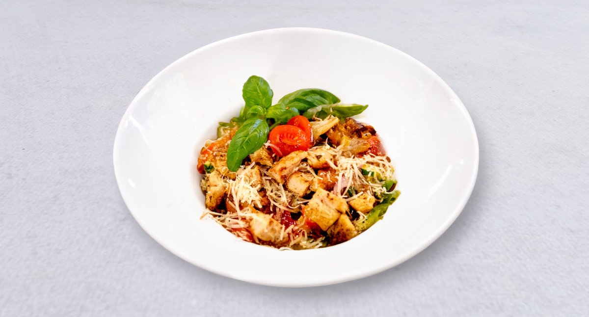 Penne, kurczak, brokuł, cebula, mozzarella, sos śmietanowy
