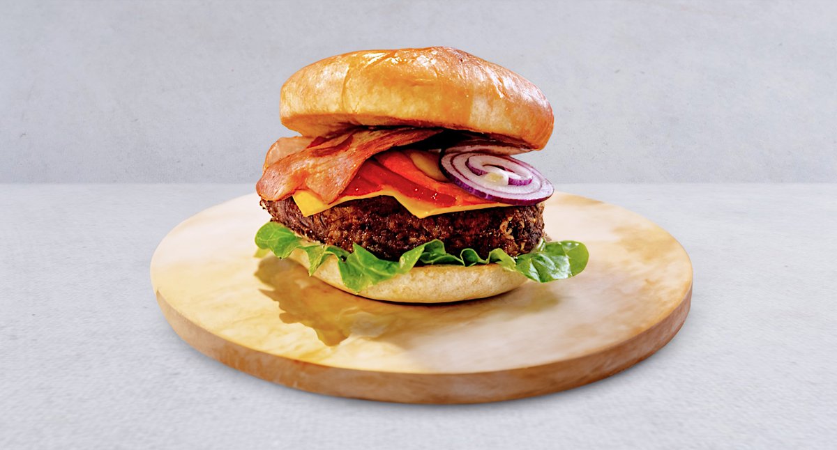 Wołowina, ser cheddar, bekon, pomidor, cebula, ogórek kiszony, sałata, sos BBQ
