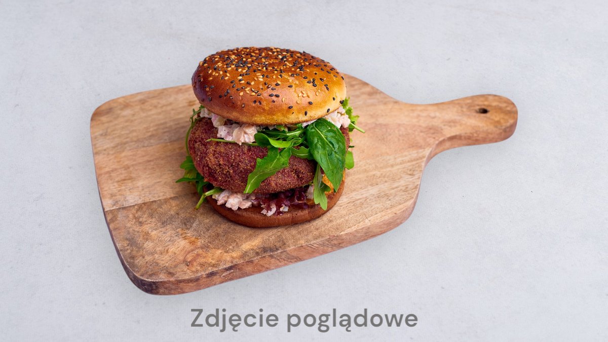 Burger z buraka, marynowany burak, grillowana papryka, rukola, sos majonezowo-ziołowy
