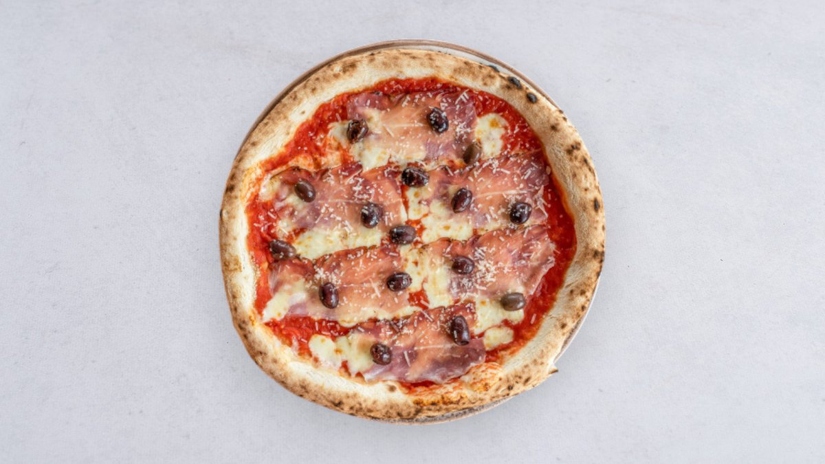 San marzano, mozzarella fior di latte, speck, czarne oliwki, parmezan D.O.P