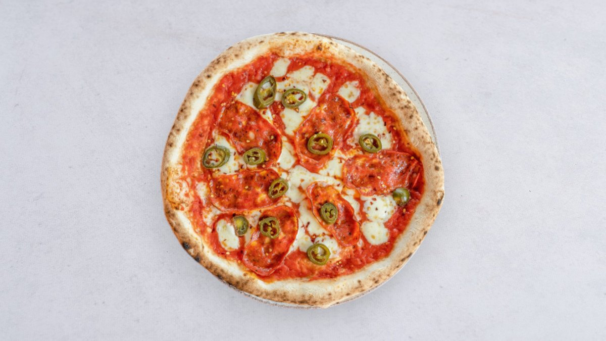 sos z pomidorów san marzano, mozzarella fior di latte, salami piccante, jalapeño, płatki chilli - bardzo ostra