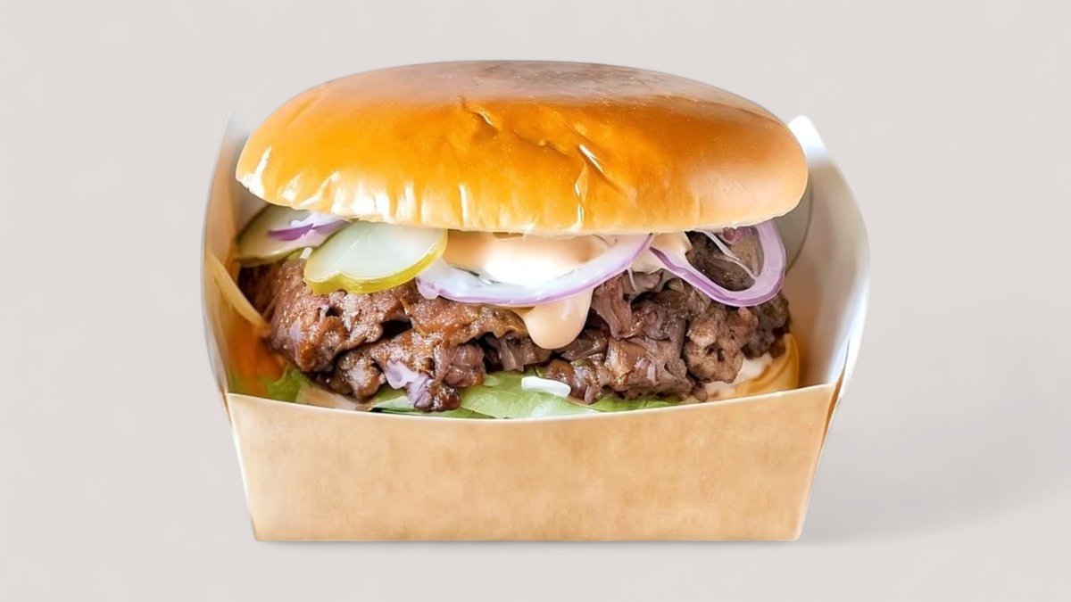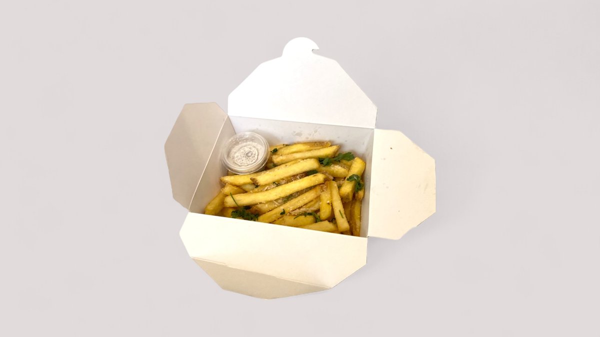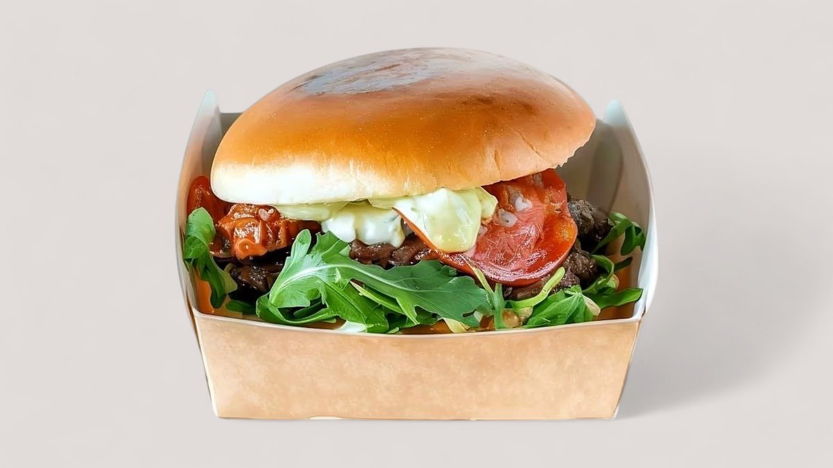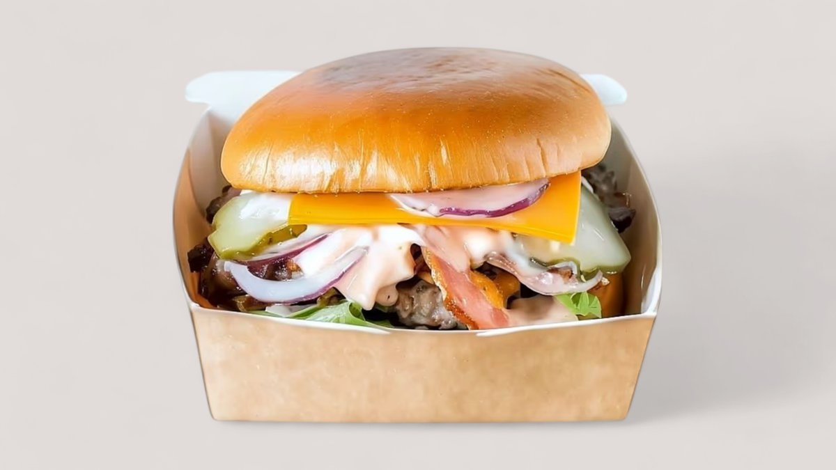 Smash Burger nazwany od metody rozgniatania mięsa na gorącym grillu, serwowane z frytkami