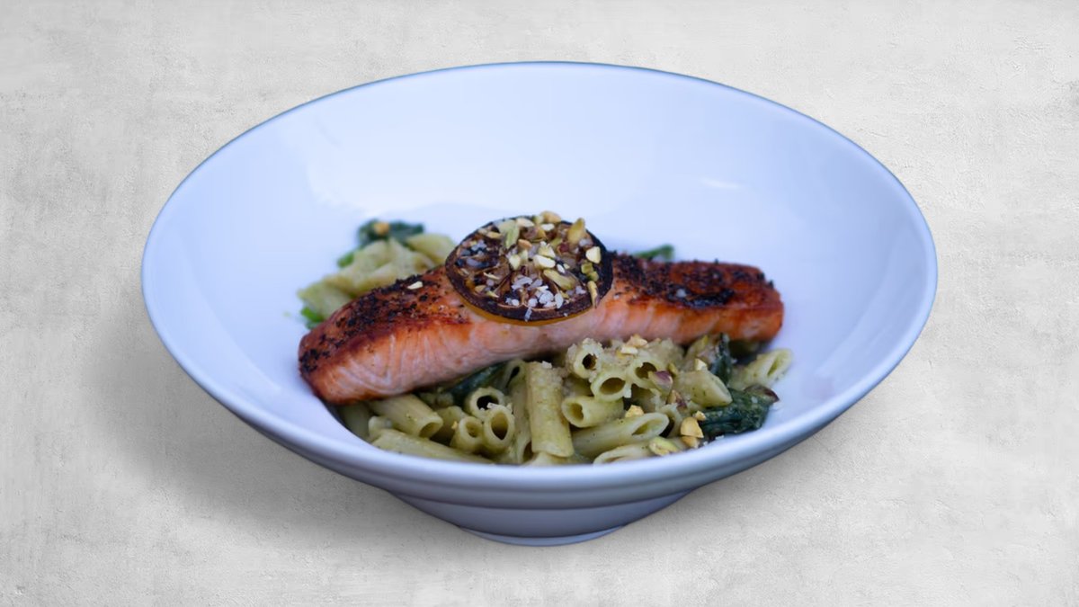 W sosie śmietanowo-cytrynowym z liśćmi szpinaku, koprem włoskim i suszonymi pomidorami