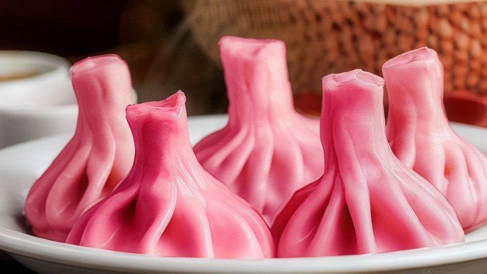 Gruzińskie pierożki wypełnione farszem z baraniny z dodatkiem świeżej kolendry i esencjonalnym bulionem