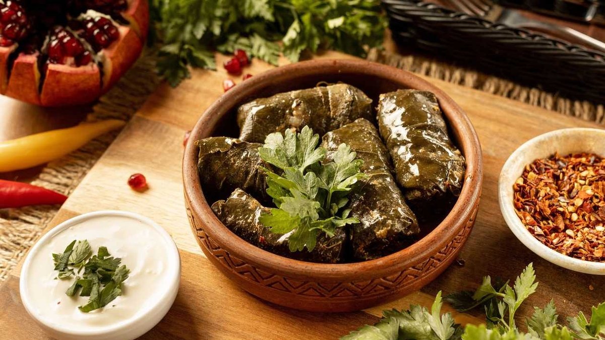 Liście winogron nadziewane mielonym mięsem wołowym,ryżem i gruzińskimi przyprawami