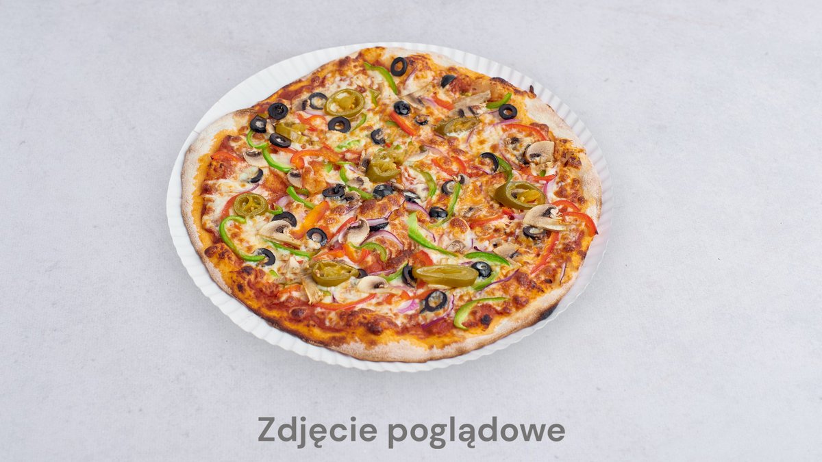 Sos, ser, pieczarki, papryka, kukurydza, oliwki, oregano