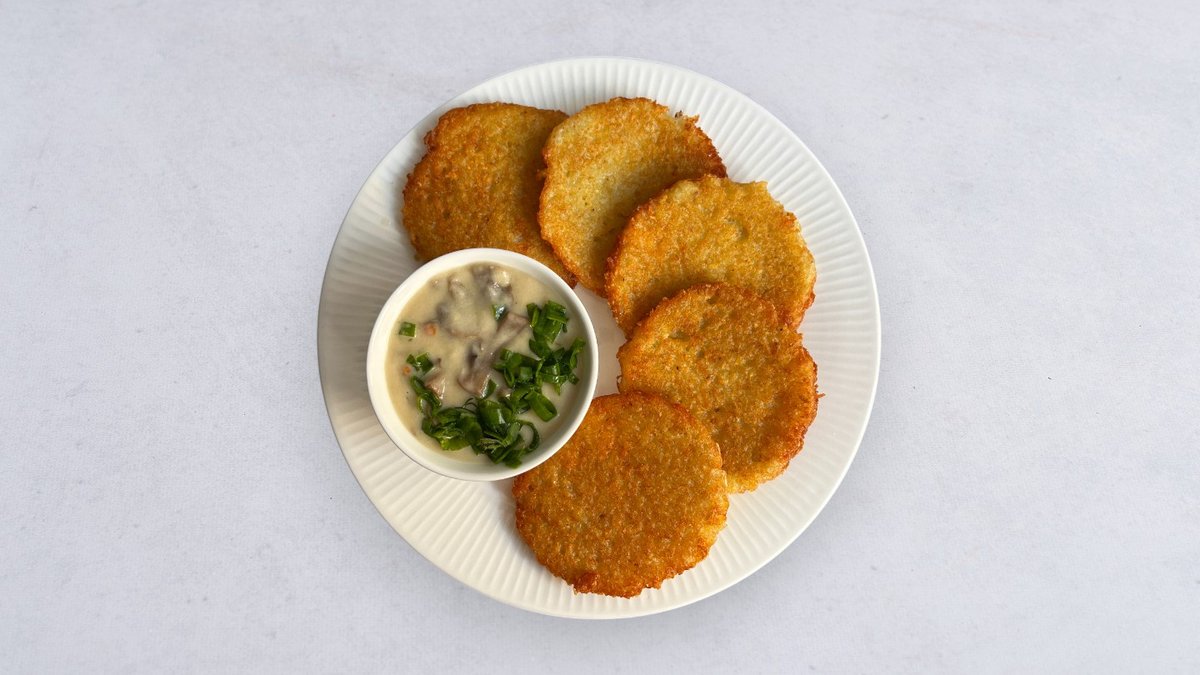 Placki ziemniaczane z sosem pieczarkowym