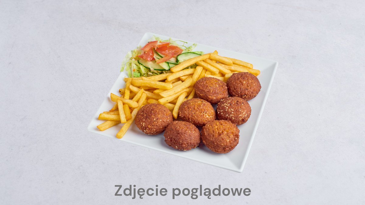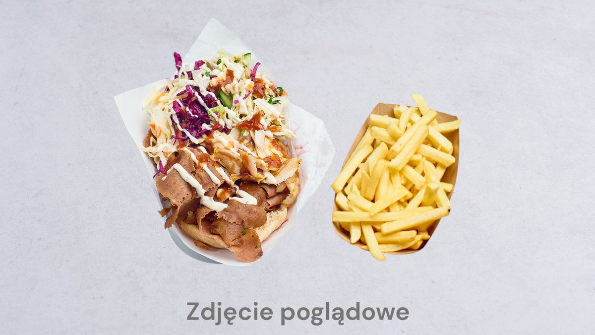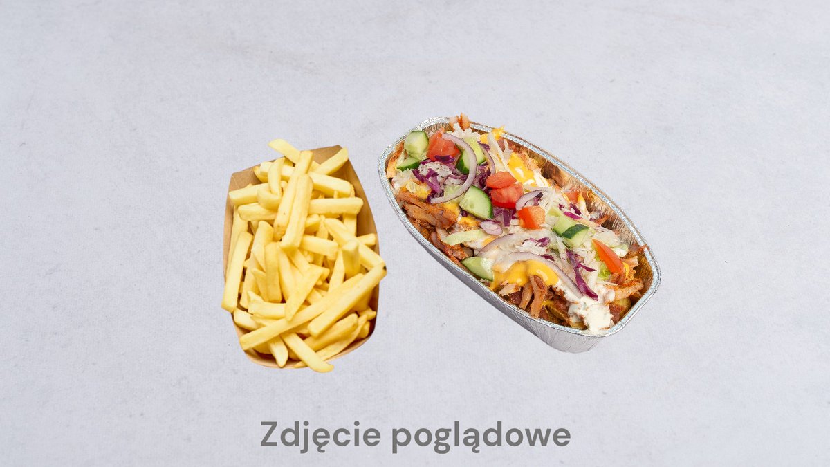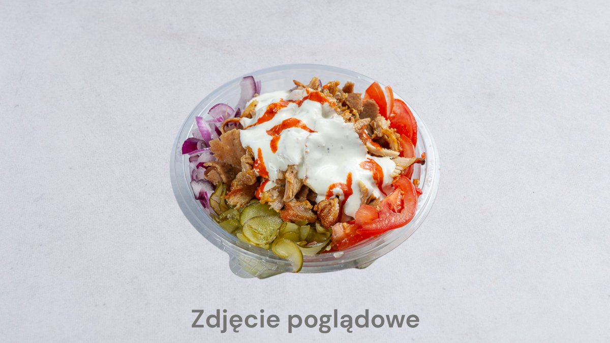 Surówka w daniach to mieszanka pomidora, ogórka, czerwonej cebuli oraz sałaty.