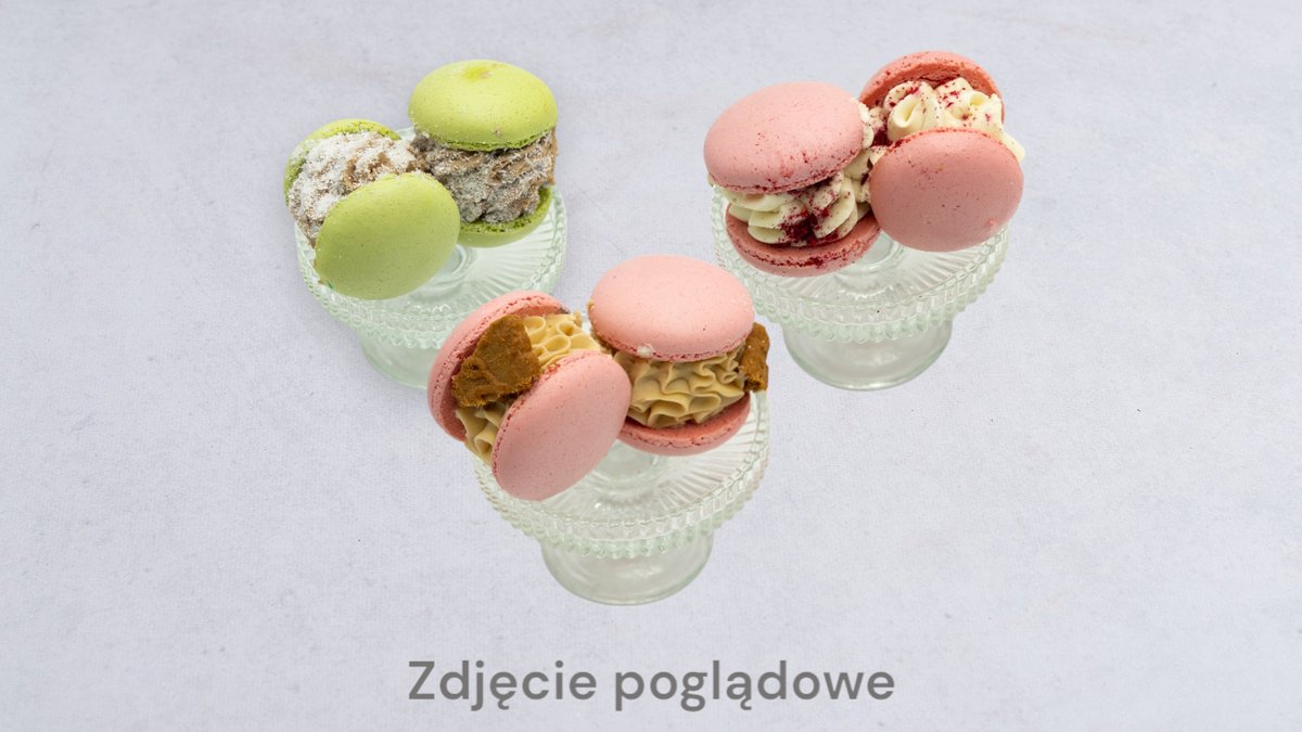 Deser na bazie mąki migdałowej, krem na białej lub mlecznej belgijskiej czekoladzie, nadzienie z czarnej porzeczki