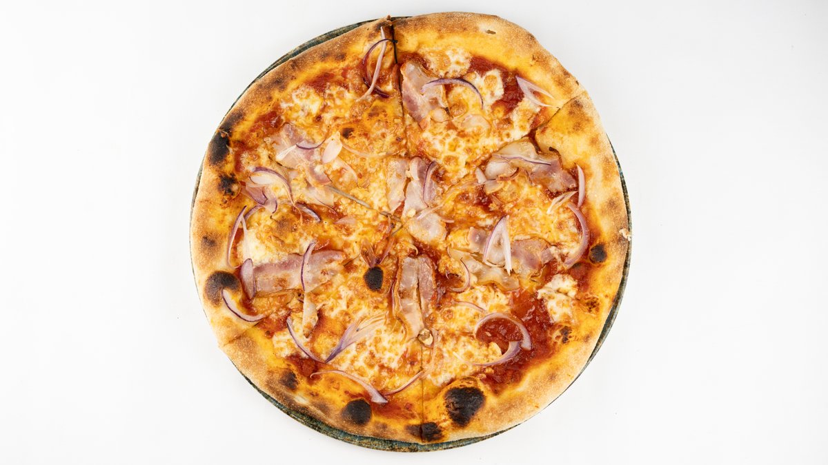 Sos z pomoidoró san marzano, mozzarella fior di latte, bekon, cebula, czosnek