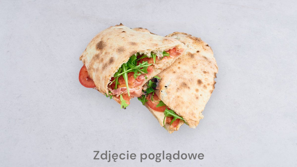 Sos pomidorowy san marzano, mozzarella fior di latte, szynka cotto, salami picantne ventricina, pieczarki blanszowane na oliwie z przyprawami, cebula czerwona, ogórek kiszony