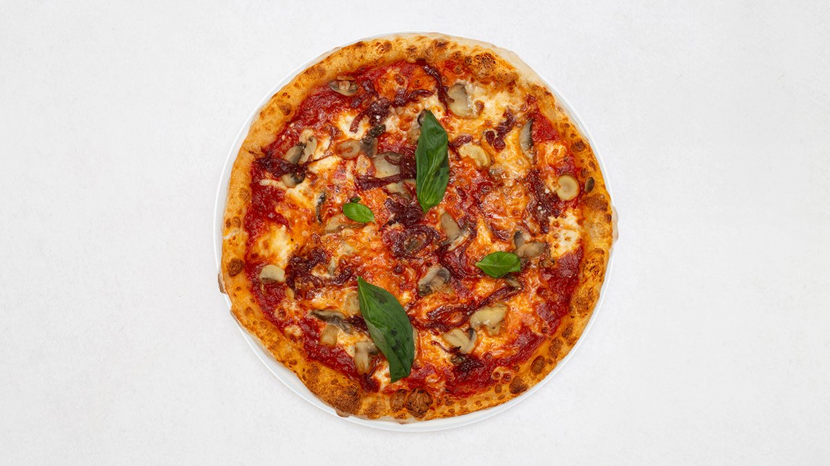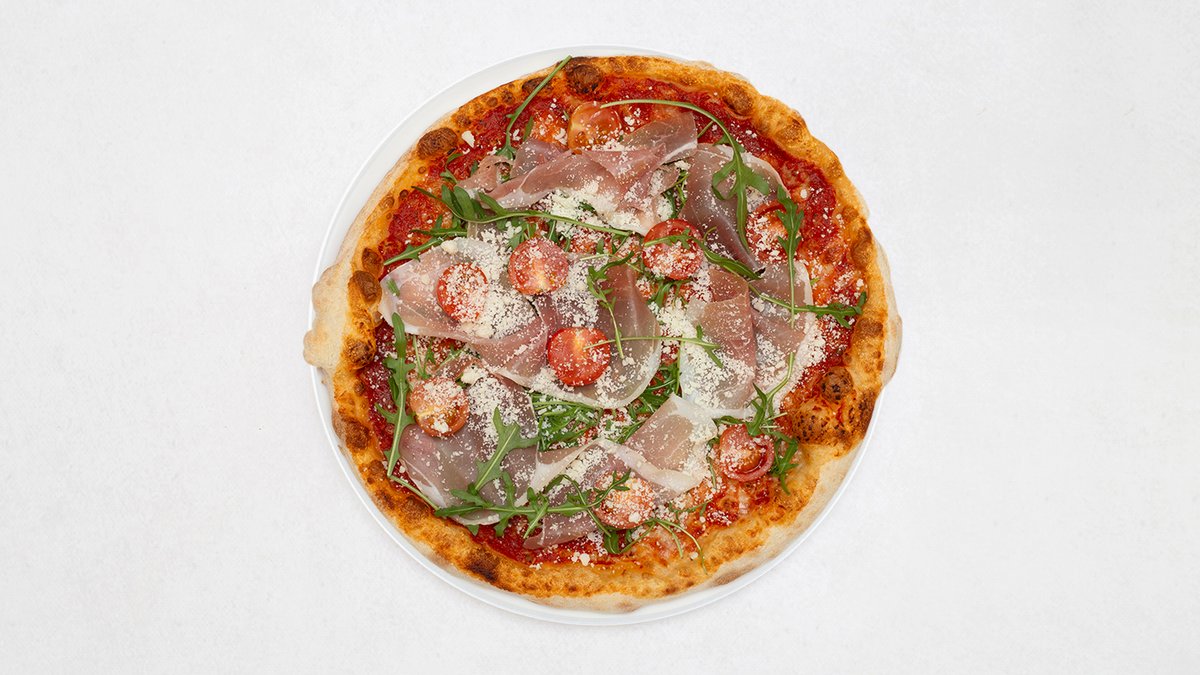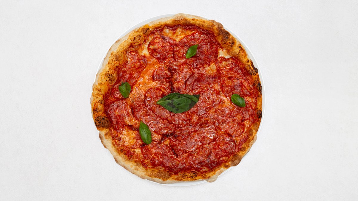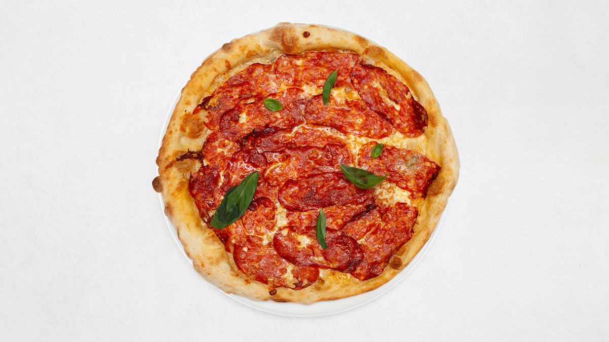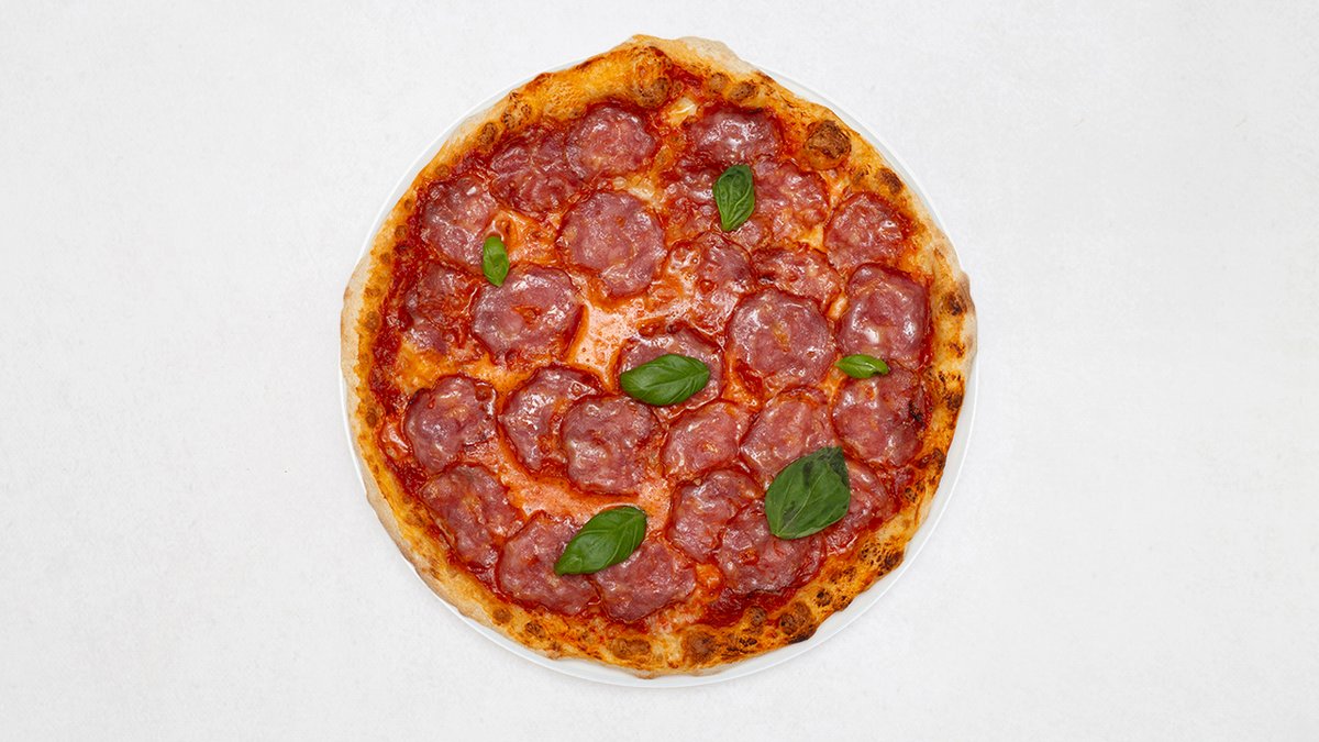 Pizza bianca salami picante & gorgonzola na cienkim cieście