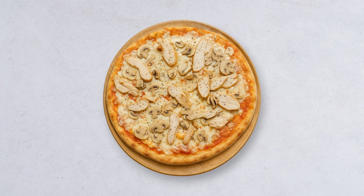 Ciasto sos pomidorowy ser, kurczak, pieczarki, bazylia