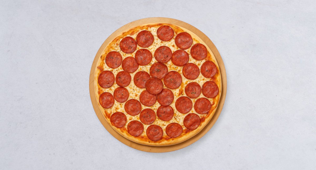 Ciasto, sos pomidorowy, ser, salami, bazylia