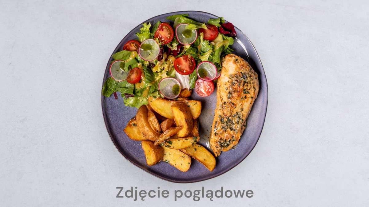Grillowana pierś z kurczaka, frytki, surówka
