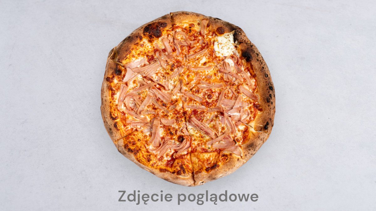 sos z pomidorów san marzano, mozzarella fior di latte, szynka cotto, pieczarki