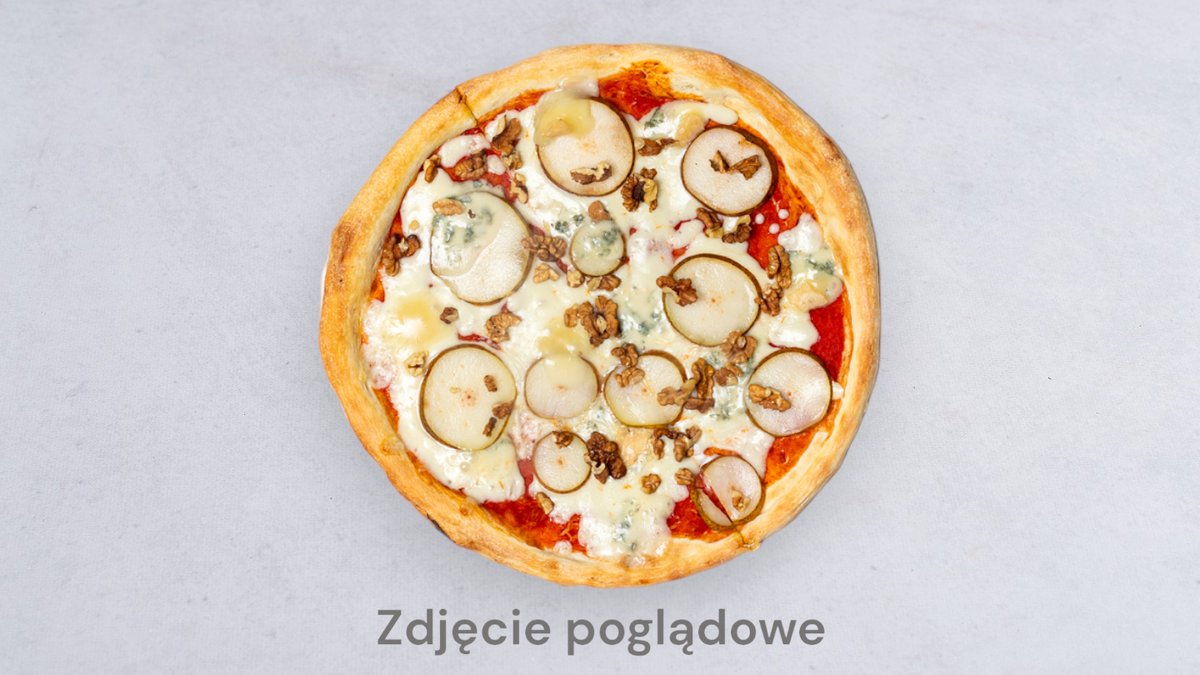 Sos pomidorowy, mozzarella, gruszka, gorgonzola, orzechy włoskie