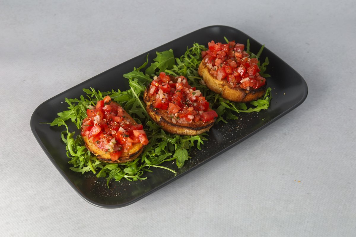 Bagietka, salsa pomidorowa, świeżo mielony pieprz