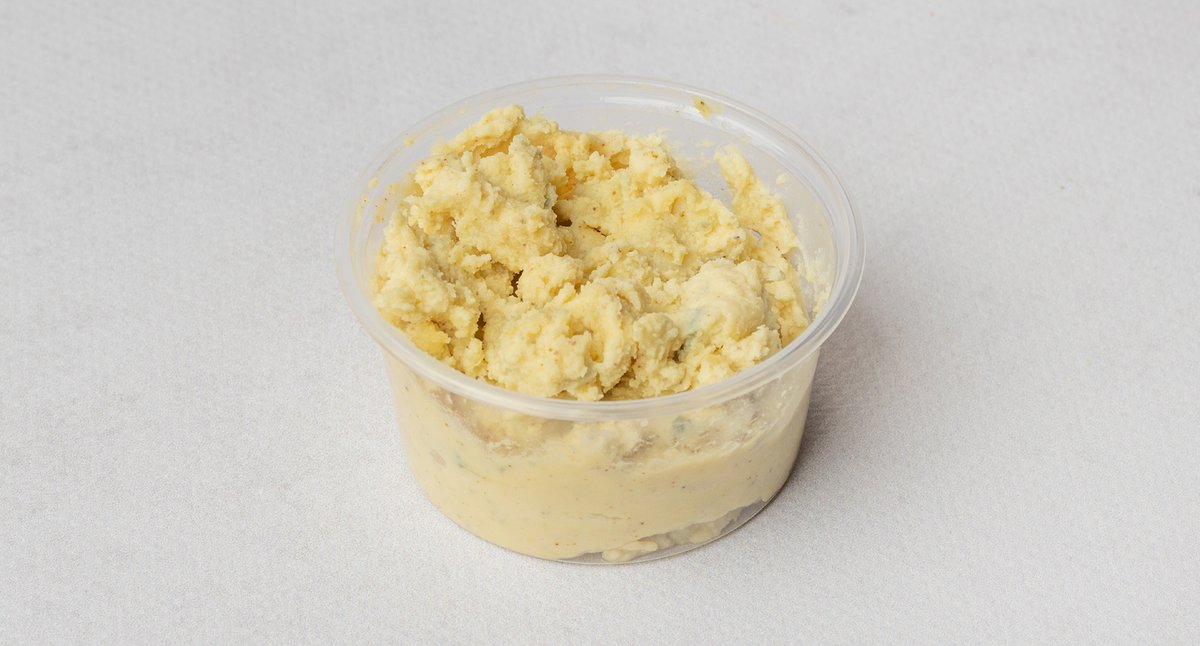 Bułka smażona na maśle, 2 kotlety ziemniaczane, pieczarki smażone, pomidor, ser camembe w panierce, sos BBQ, sos aioli, mix sałat. Podawane z frytkami +sos aioli