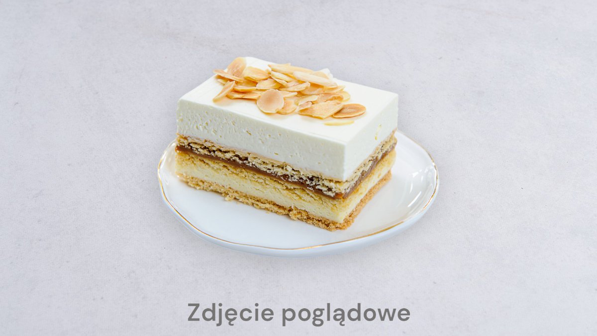 Mascarpone, biała czekolada, wiórki kokosowe, migdały, sos