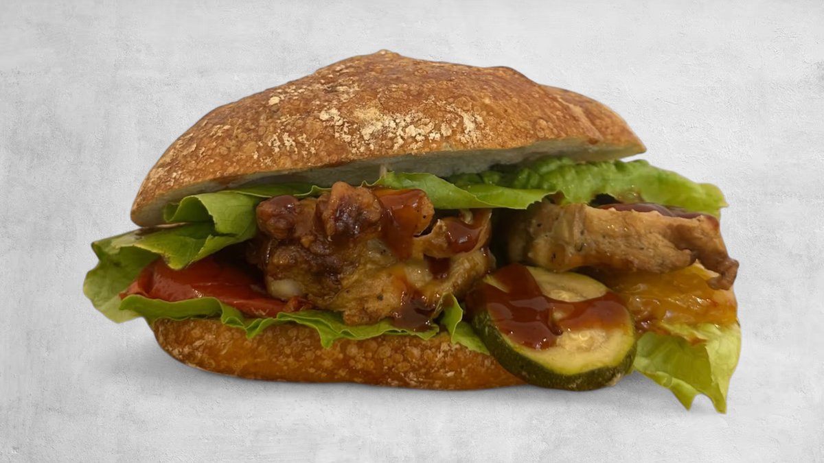 Bułka z kurczakiem pieczonym. ( noga z kurczaka ) z warzywami
