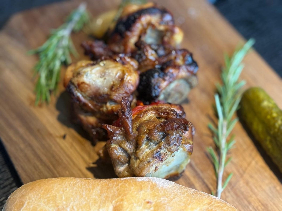 Szaszłyk z rożna z karkówki z warzywami
