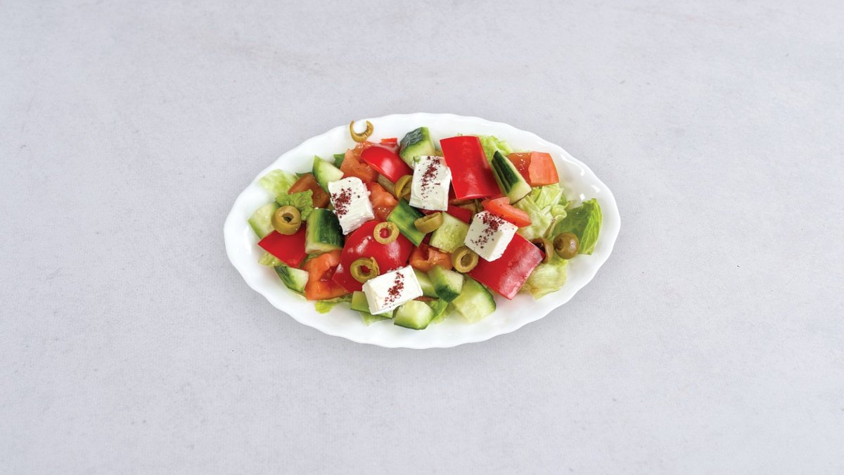 Falafel, surówki, ogórek, pomidor, papryka, cebula, sos