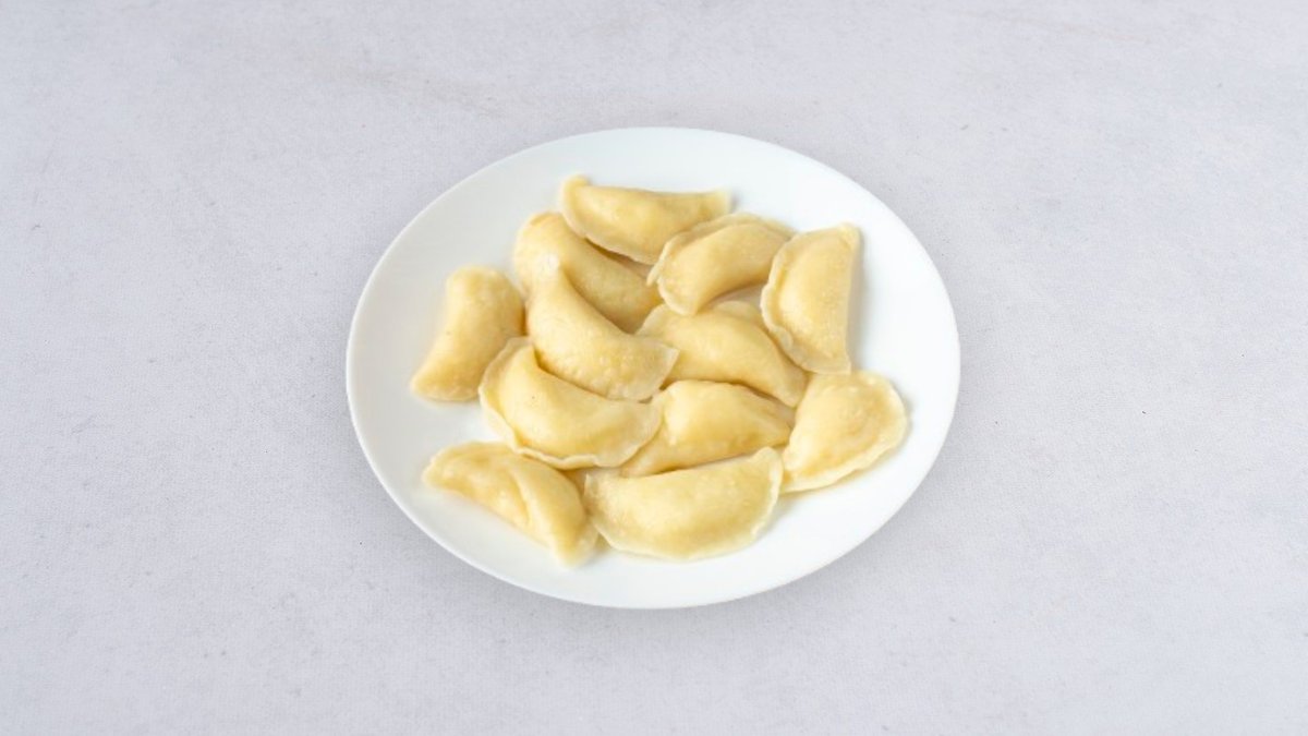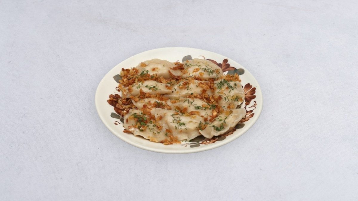 Cztery domowe mini naleśniki, kurczak gotowany, cebulka, sos beszamelowy, ser żółty, prażona cebulka