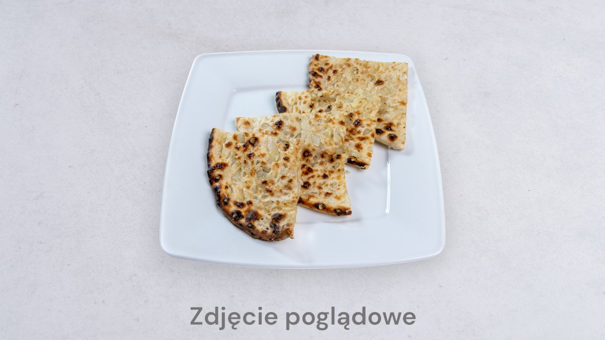 Tradycyjny indyjski chleb z białej mąki, nadziewany białym serem własnej produkcji. Posmarowany masłem