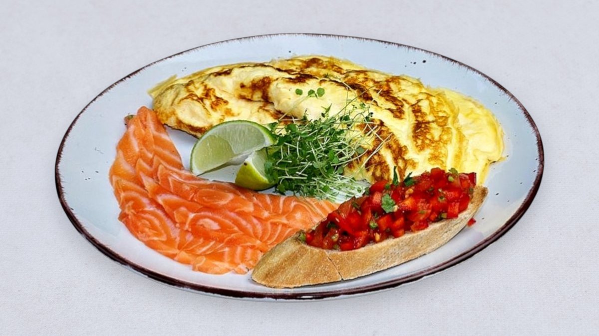 Jajko domowe z łososiem solonym i ciabatta z owocową salsą