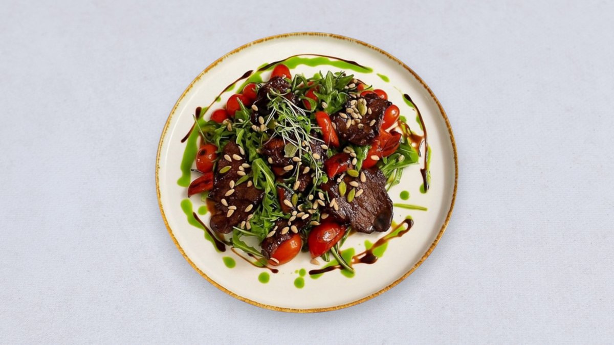 Wołowina w firmowym stylu z sałatą i świeżymi warzywami