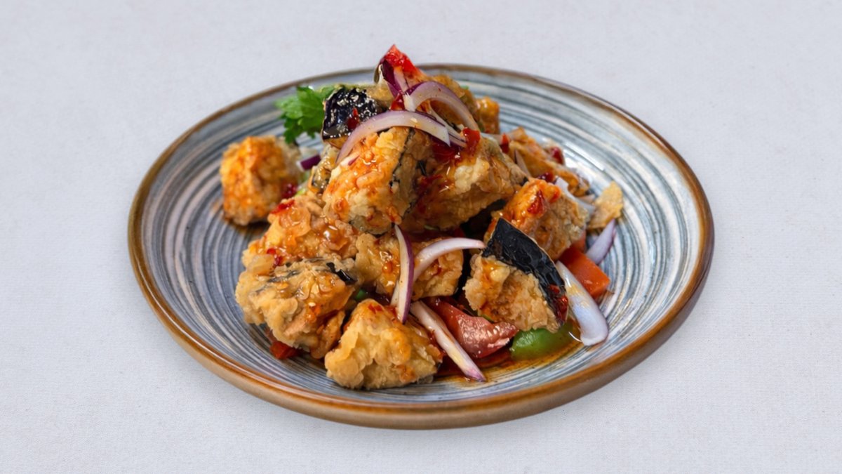 Podudzie z kurczaka, sos unagi, tortilla, adzika zielona, czerwona cebula