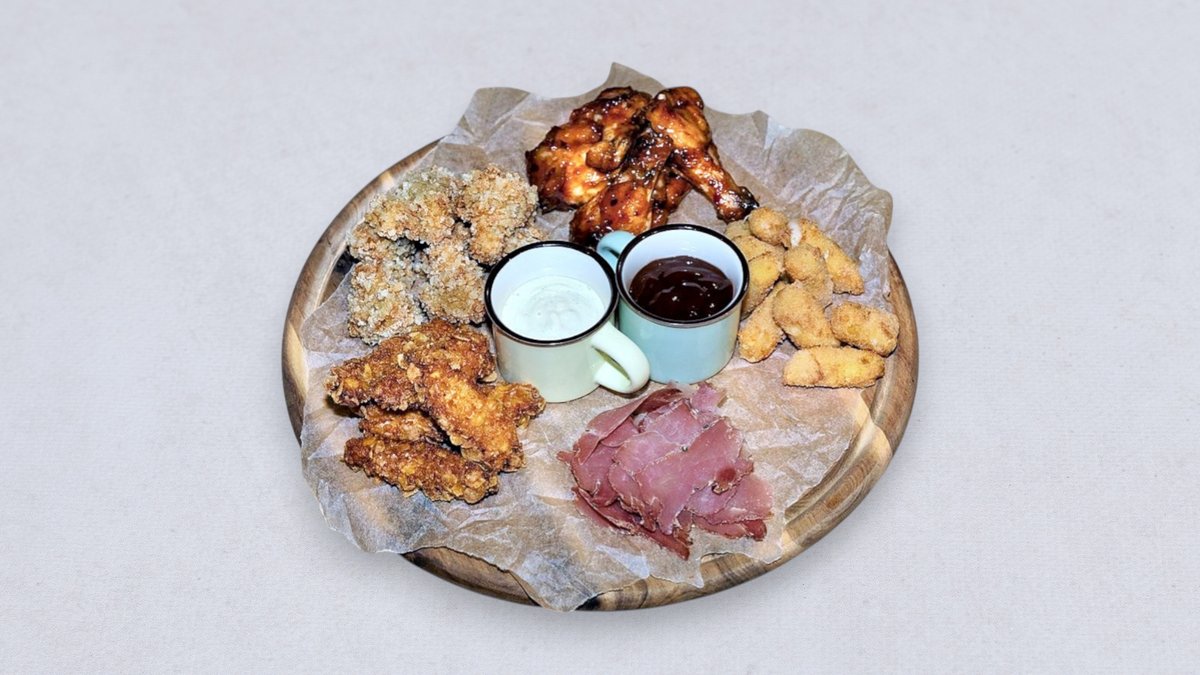 Skrzydełka grillowane, pieczarka w panierce, serowe paluszki, basturma, nuggetsy