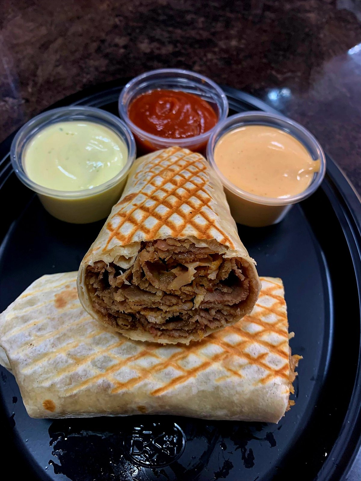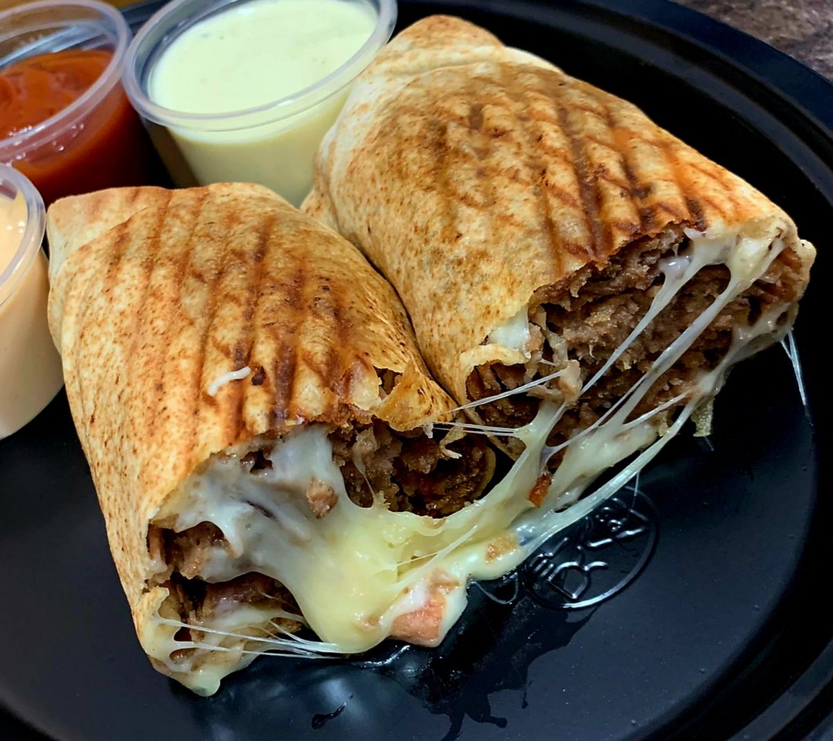 Mięso, surówka (kapusta pekińska), ser, sos. Zdjęcie poglądowe