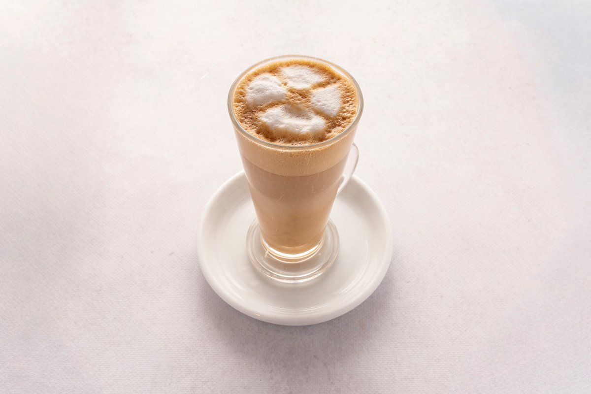 Delikatne espresso z dużą ilością spienionego mleka, łagodne i kremowe