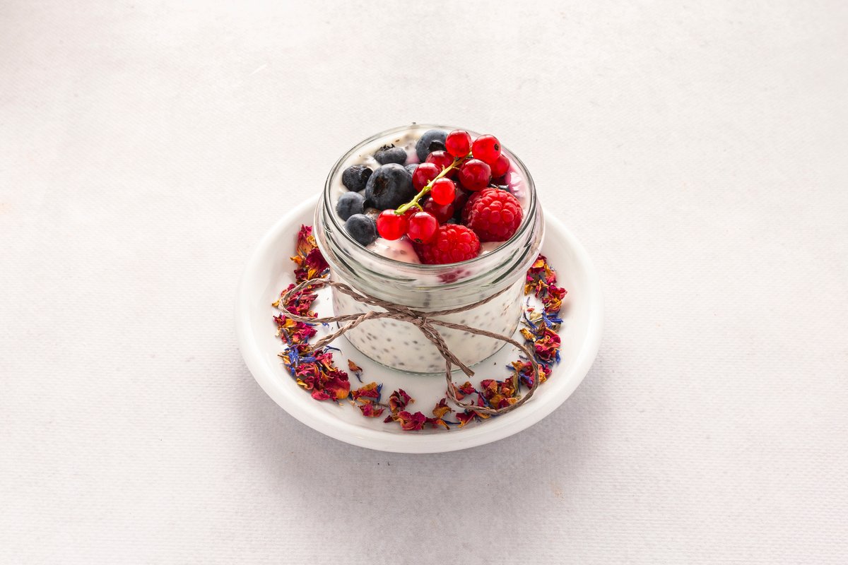 Jogurt naturalny, konfitura owocowa, chia, świeże owoce