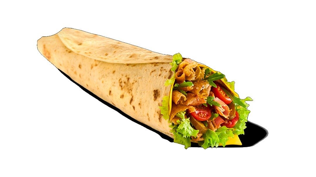 Z mięsem 100g oraz 2 sosami z listy do wyboru, warzywami 70g i plackiem 55g