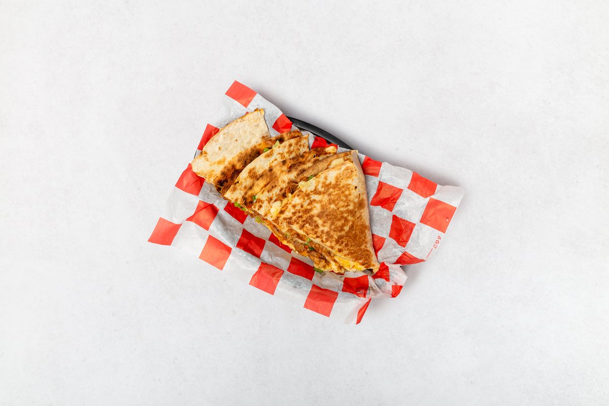 Z roztopionym serem, świeżymi warzywami, serwowane w chrupiącej tortilli. Ser, papryka, pomidory, szczypiorek. Rodzaj tortilli do wyboru