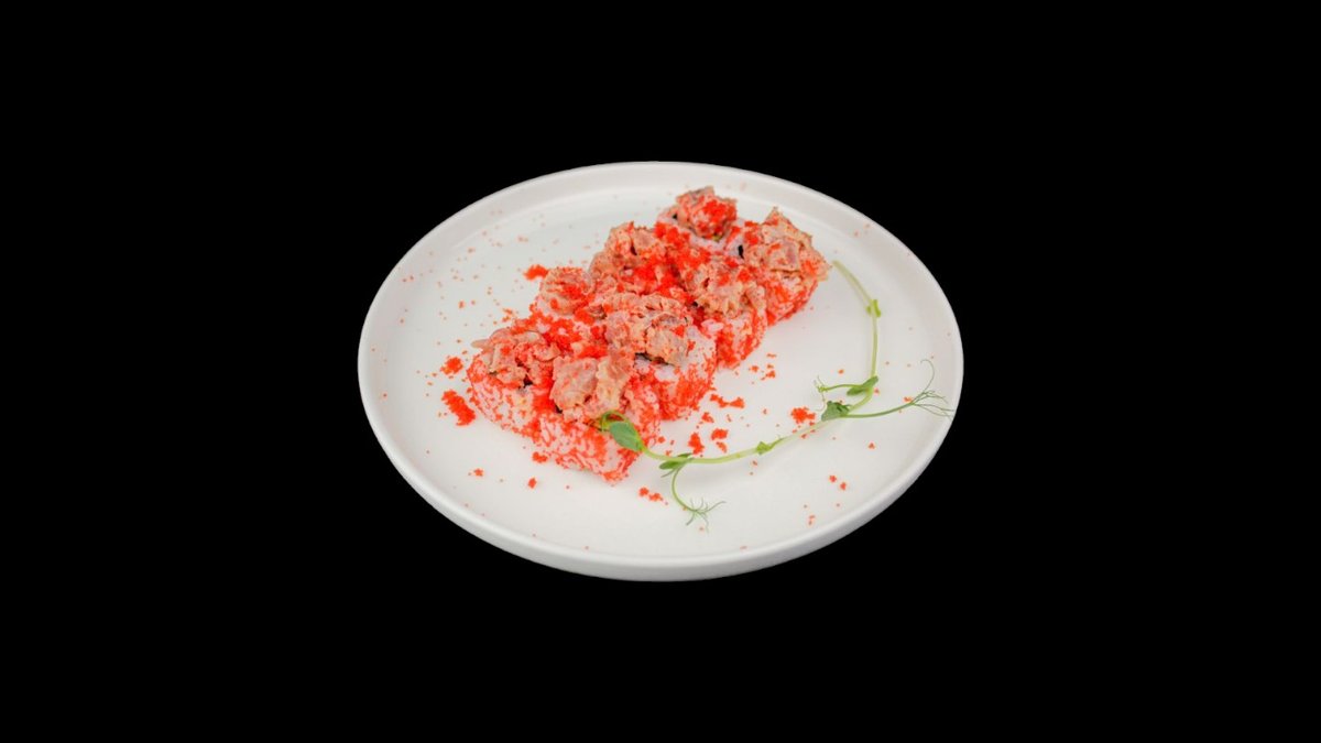 Z tuńczykiem, serkiem, spicy-mayo, kawiorem, serem gouda i kanpyo. Polane sosem teriyaki