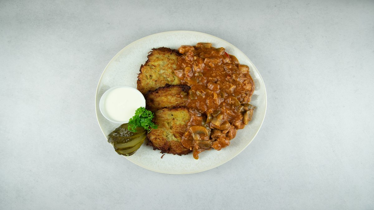 Placki ziemniaczane z sosem pieczarkowym