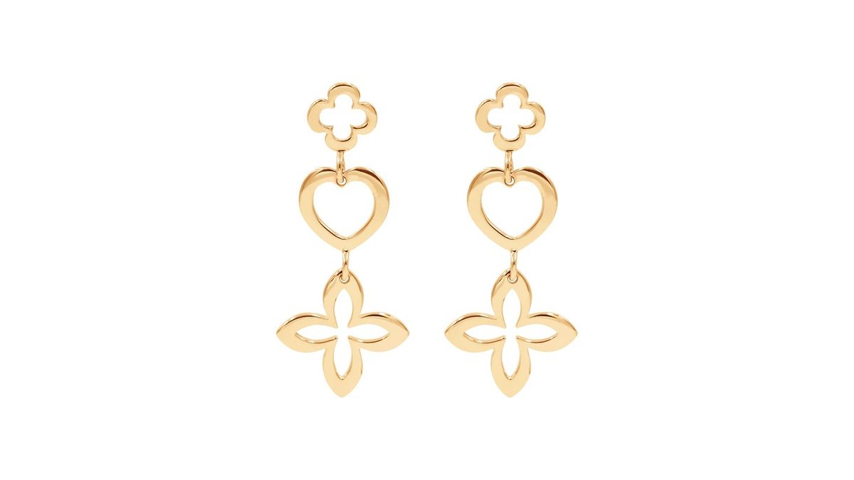Kolczyki sztyfty ażurowe Icons z kryształami w kształcie serca pozłacane