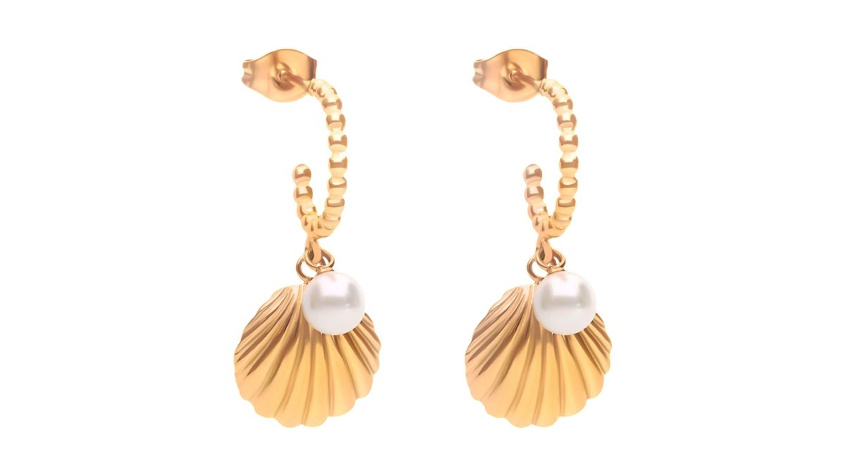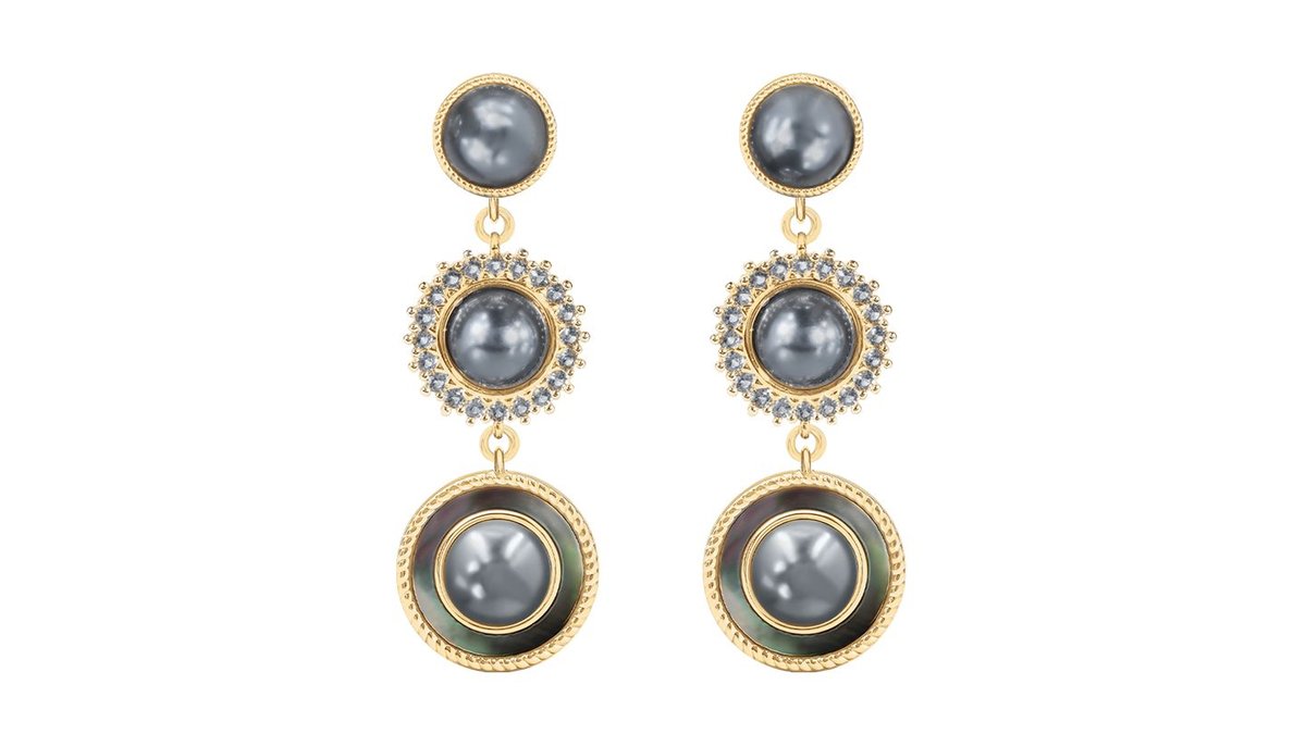 Kolczyki modułowe Cosmos z szarymi perłami pozłacane