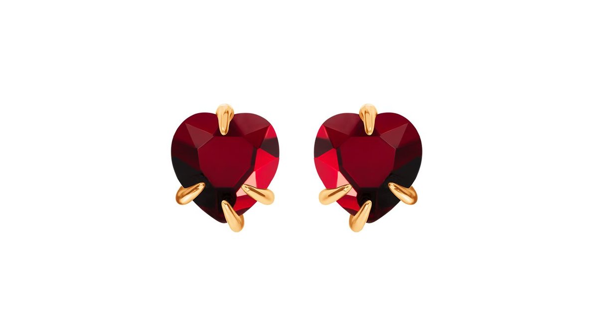 Kolczyki Amour z czerwonymi kryształami pozłacane
