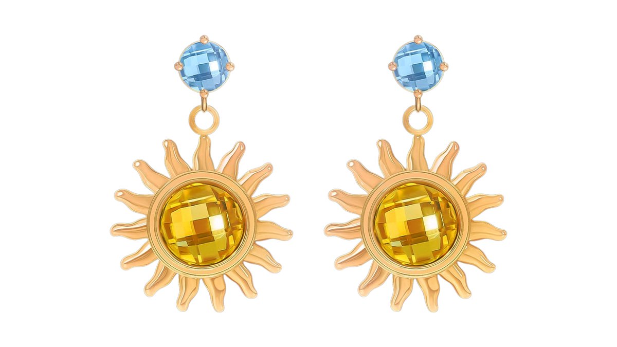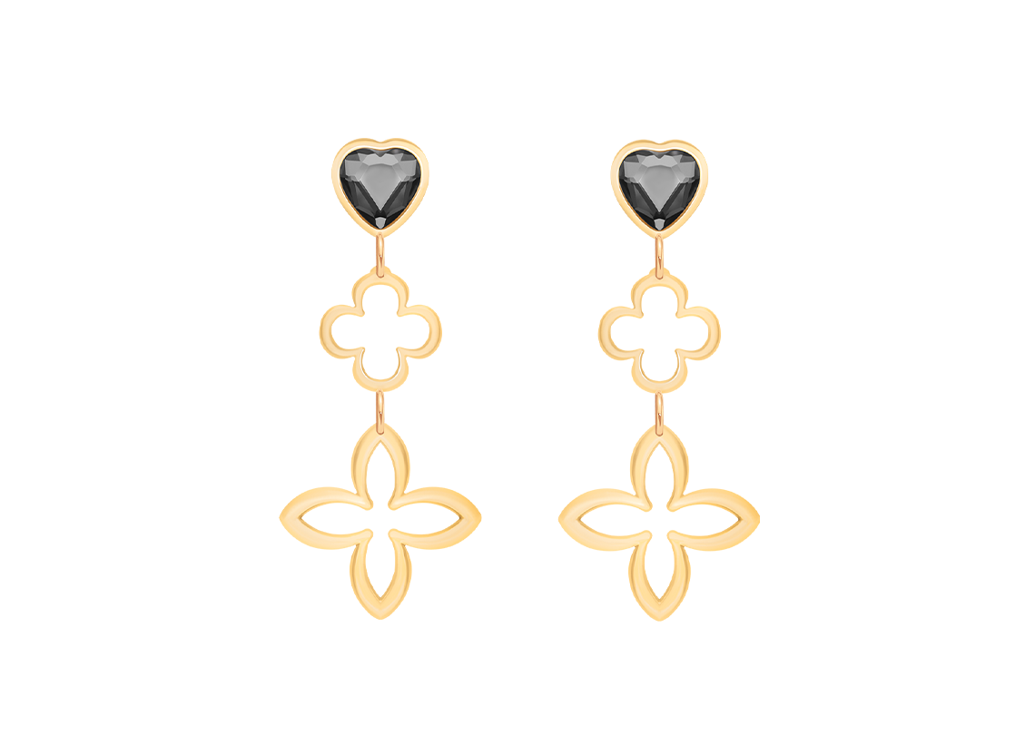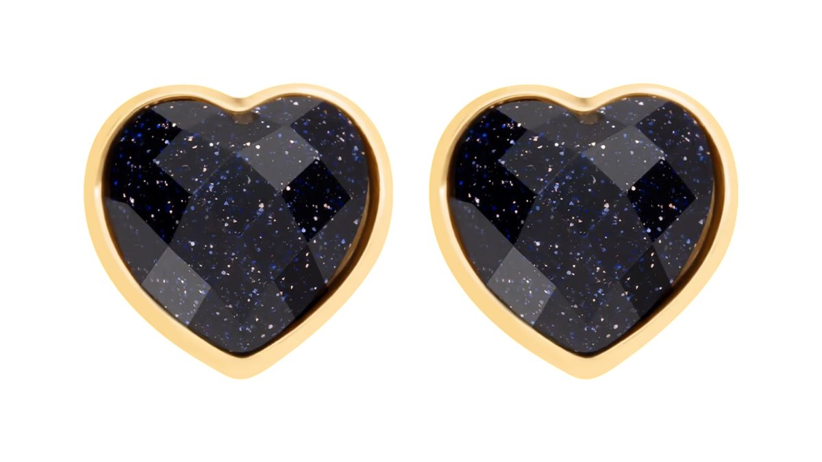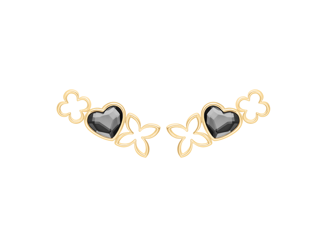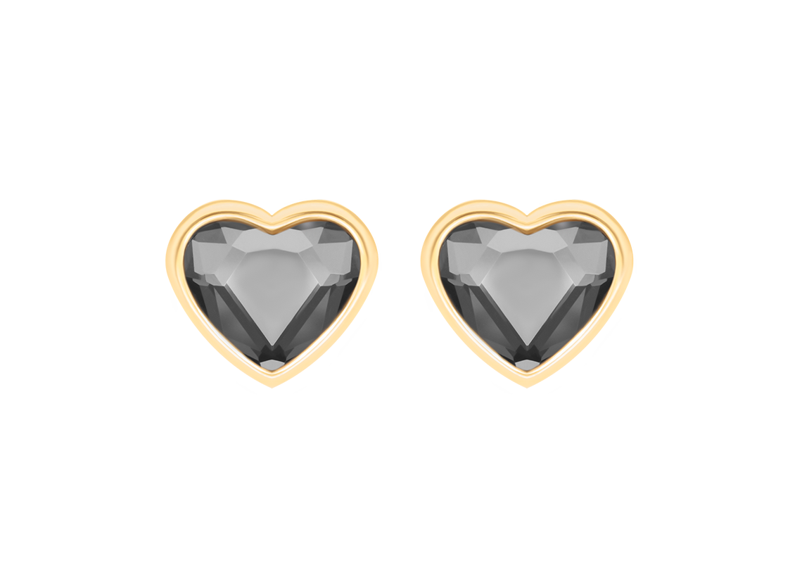 Kolczyki Mini Icons serca z czanym brokatowym kryształem, pozłacane