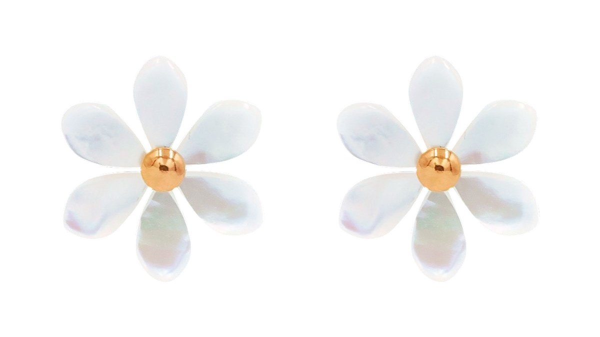 Kolczyki Flowers na sztyfcie pozłacane z niezapominajkami z masy perłowej