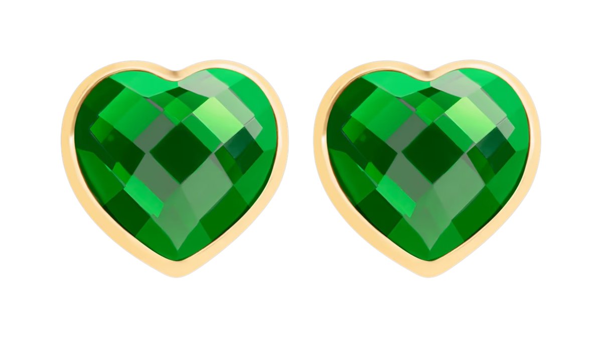 Kolczyki Mini Icons serca z zielonym kryształem, pozłacane