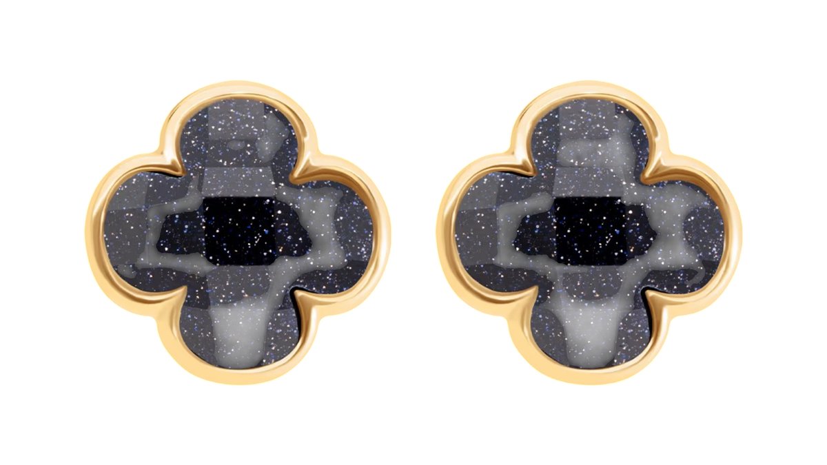Kolczyki Mini Icons koniczyny z czarnym brokatowym kryształem, pozłacane