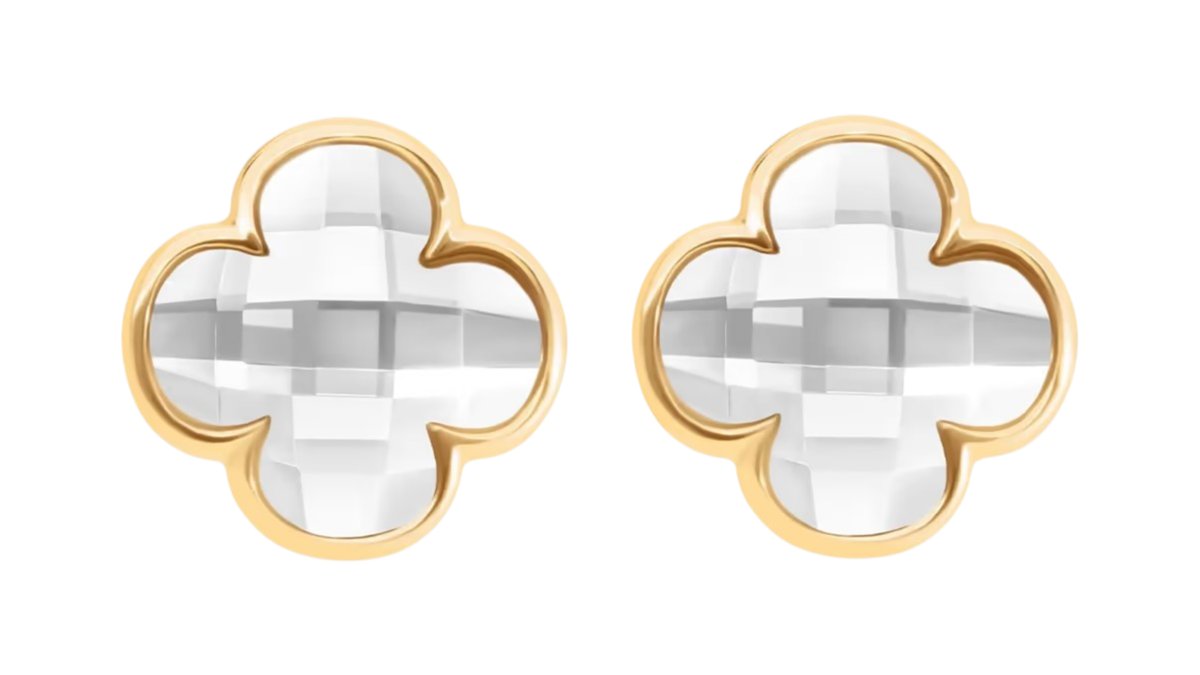 Kolczyki Mini Icons koniczyny z białym kryształem, pozłacane