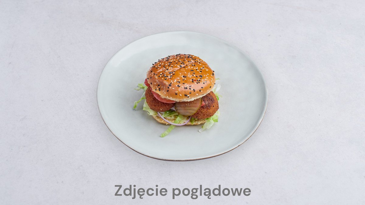 Kotlet wołowy 100 %, cebula czerwona, ogórek konserwowy, pomidor, sałata ketchup, majonez
