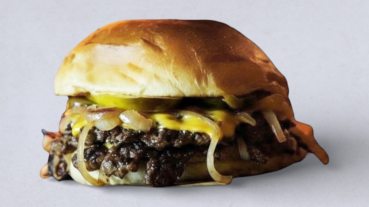 2x100g wołowiny w stylu "smash", maślana bułka, ketchup, karmelizowana cebulka, musztarda, nasze ogórki kiszone, grillowana cebulka, 4x plaster sera